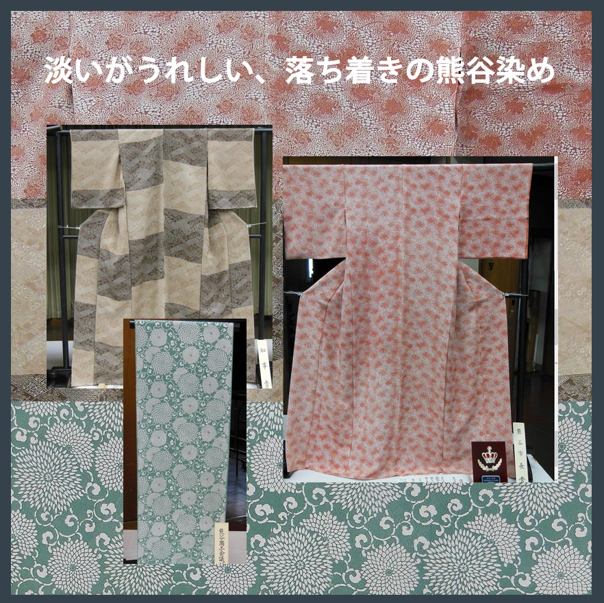 江戸時代から始まったとされる「熊谷染」。素材は木綿から絹に変わり、大正初期には京友禅や江戸小紋の技が取り入れられました。